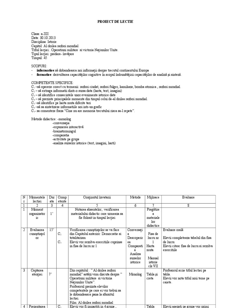 Plan De Lectie Istorie Al Doilea Razboi Mondial