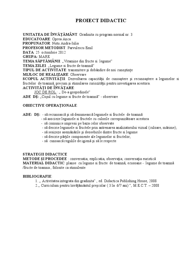 Pdf Proiect Didactic Integrat Anamaria Pesclevei Academia Edu