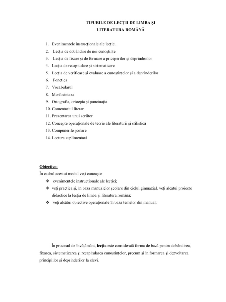 Tipuri De Lectii Limba Romana