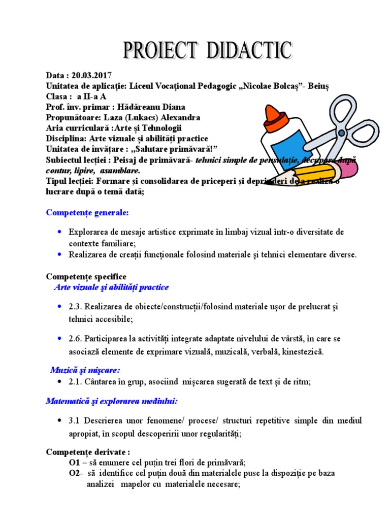 Proiect Didactic Avap Clasa A Iia 20 03 2017