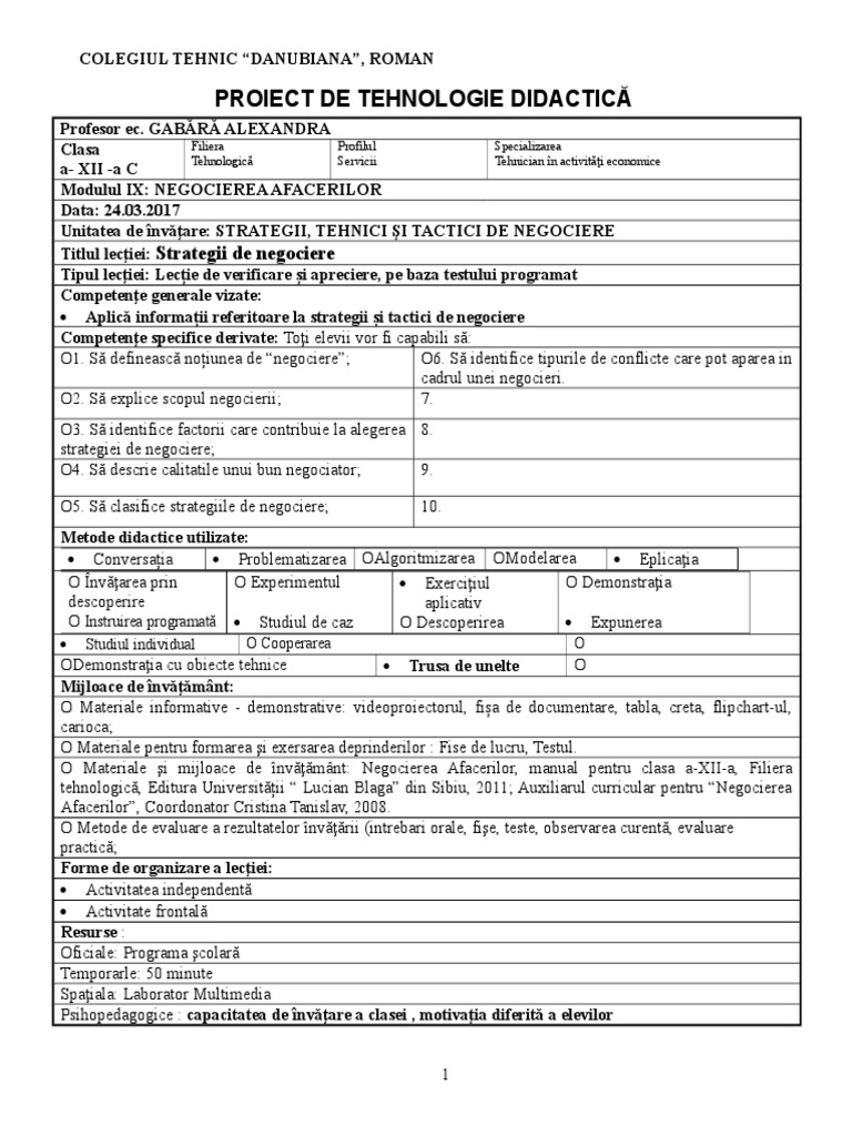 Proiect de lectie negocierea in afaceri. Ai nevoie de doar 6 puncte. Proiect de lectie clasa. Mai jos poate fi vizualizat cuprinsul si un extras din document aprox.
