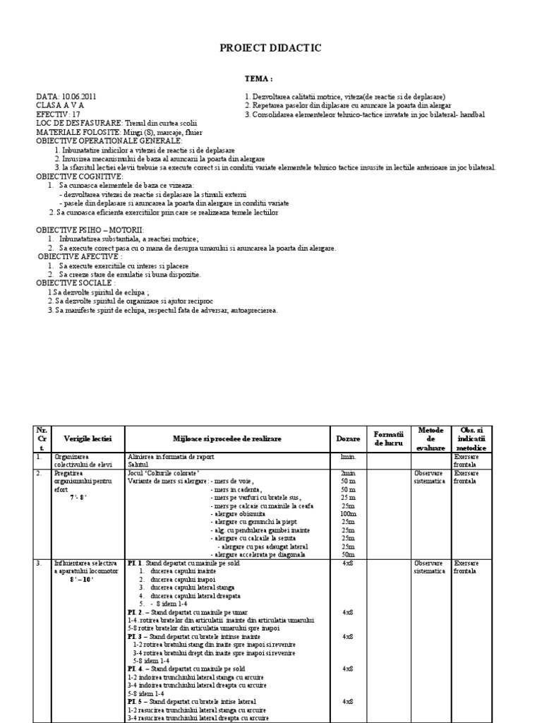 Proiect Plan De Lectie Clasa A 6 A Educatie Fizica 383696