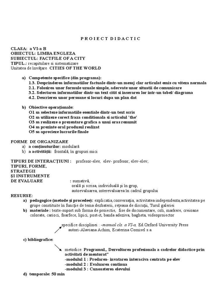 Doc Proiect Didactic Lavinia ștefania Academia Edu