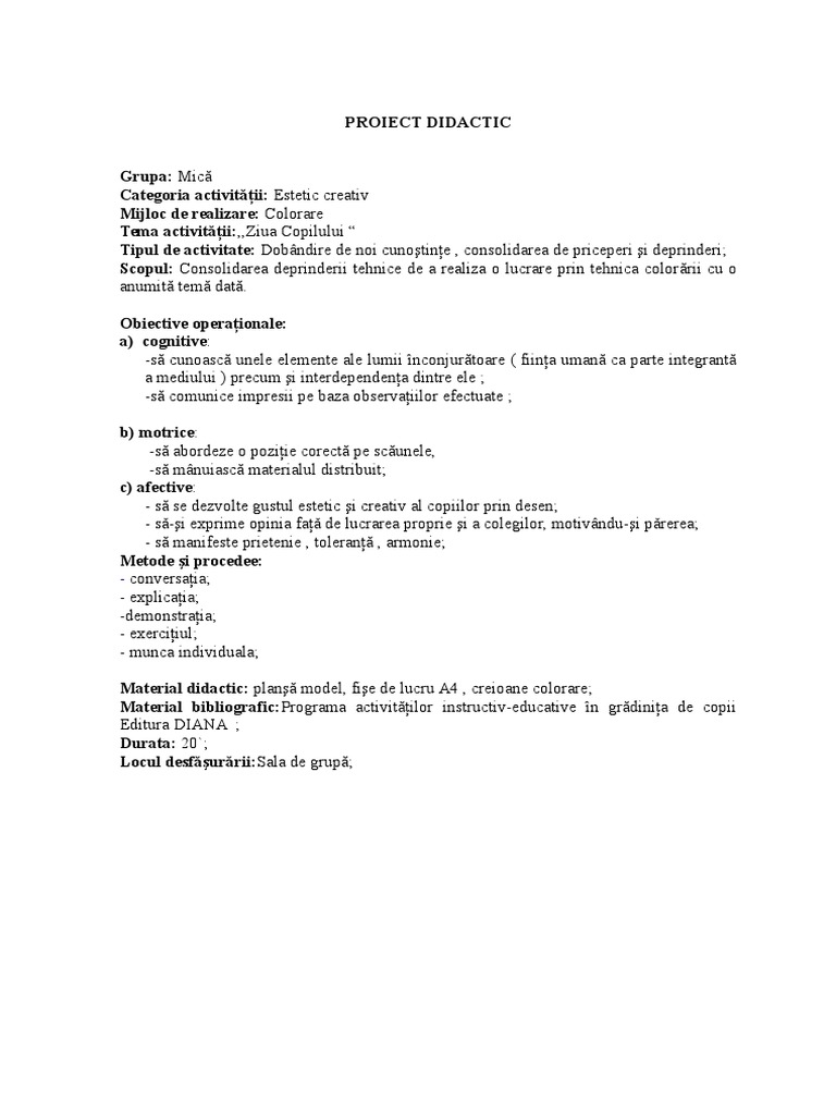 Proiect Didactic