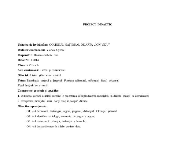 Proiect Didactic Clasa A 8 A